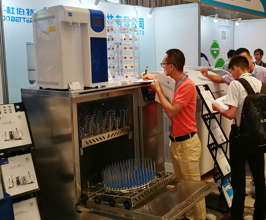 展會(huì)現(xiàn)場(chǎng)熱鬧非凡,杜伯特展臺(tái)人潮洶涌。有些嘉賓對(duì)可視窗機(jī)型興趣盎然,有些對(duì)技術(shù)問(wèn)題頗為關(guān)注。杜伯特產(chǎn)品經(jīng)理積極演示洗瓶機(jī)清洗流程,細(xì)致講解行業(yè)知識(shí)。大家交流產(chǎn)品、分享經(jīng)驗(yàn),共同推動(dòng)實(shí)驗(yàn)室清洗消毒水平的進(jìn)一步提升。