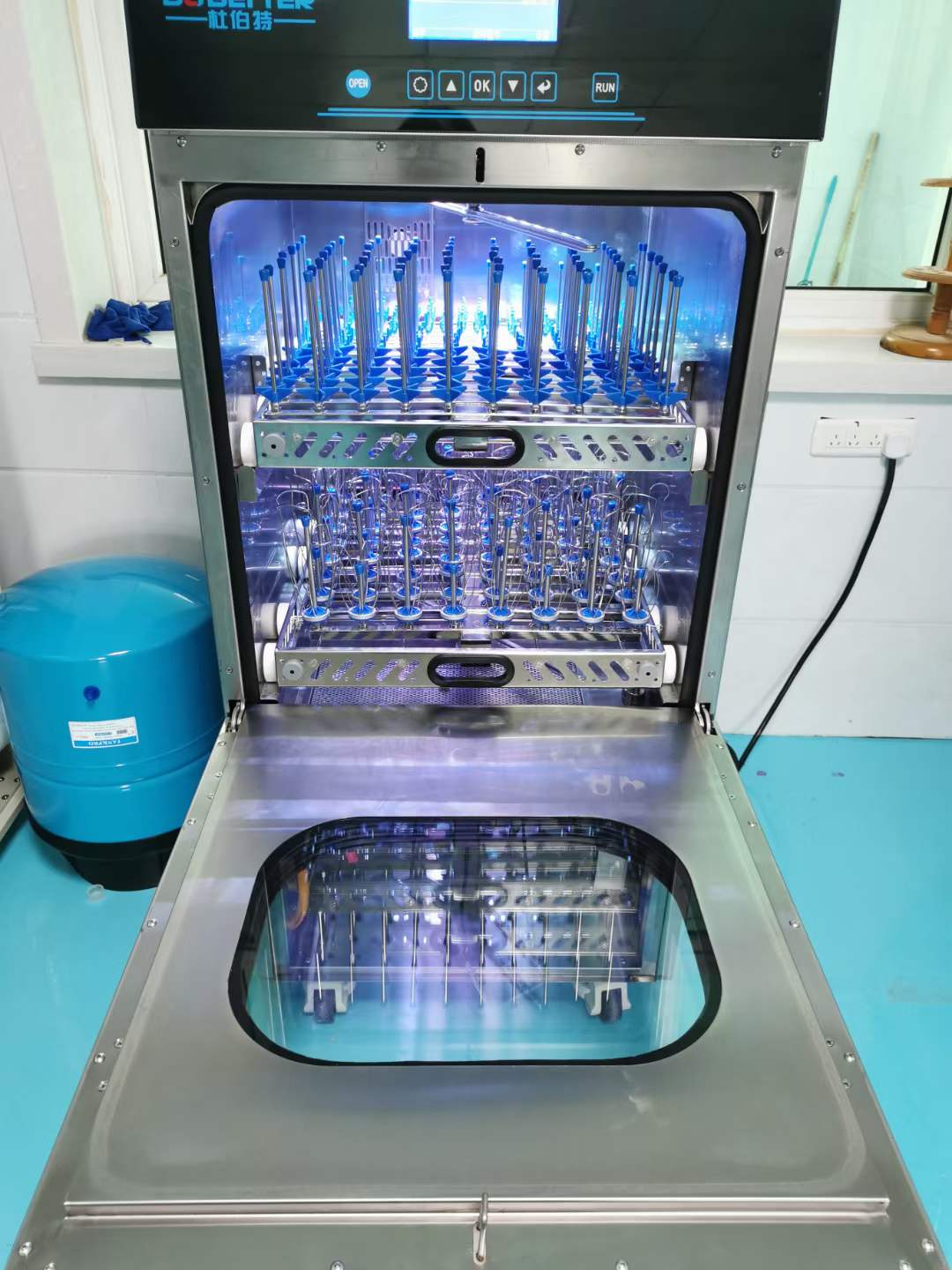 2、清洗艙:這是一個封閉的空間,用于放置需要清洗的玻璃器皿。清洗艙通常由不銹鋼或其他耐腐蝕材料制成,以承受清洗過程中使用的化學試劑和高溫。